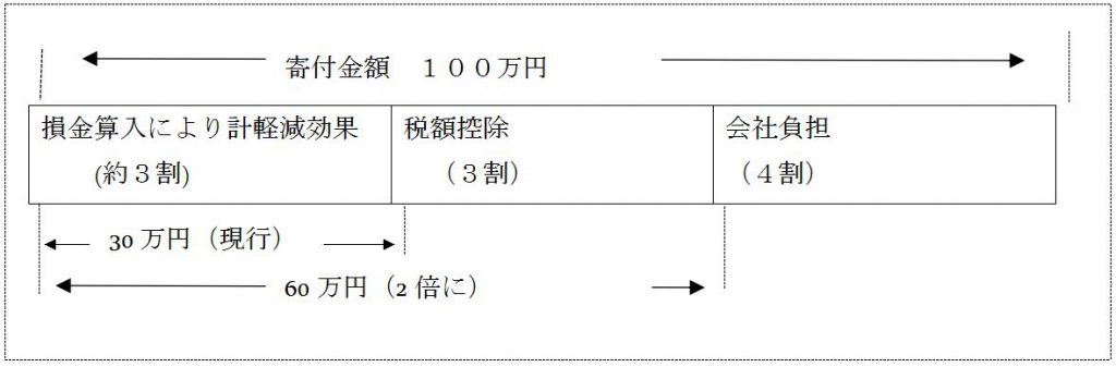 今までの寄付金税制でも全額損金算入することで約3割の税金が戻ってくる制度でしたが、さらにこの創設により法人住民税などから3割の税額控除ができることになりました。