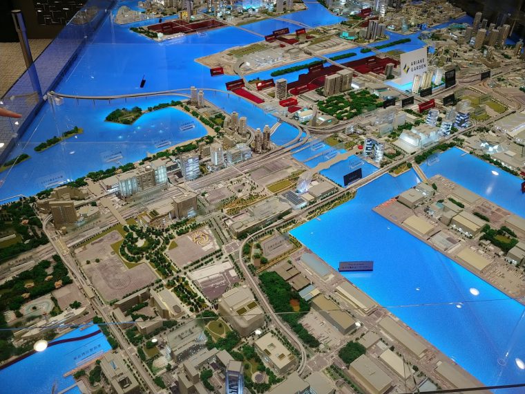 住友不動産のコーナーでは湾岸地区のジオラマを展示中。